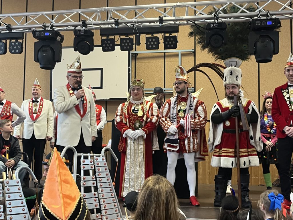 Wie in jeden Jahr heizten die Samba-Trommler/innen aus Glessen tüchtig ein. Besonders freuten sich die Kinder über die Kamelle und zum Höhepunkt des Treibens über den Besuch des Glessener Dreigestirns, mit Prinz Nils I, Bauer Philipp und der Jungfrau Uschi.